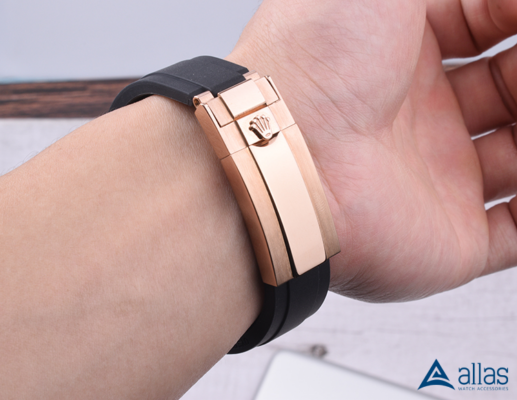 Khóa gập đồng hồ Rolex màu vàng hồng